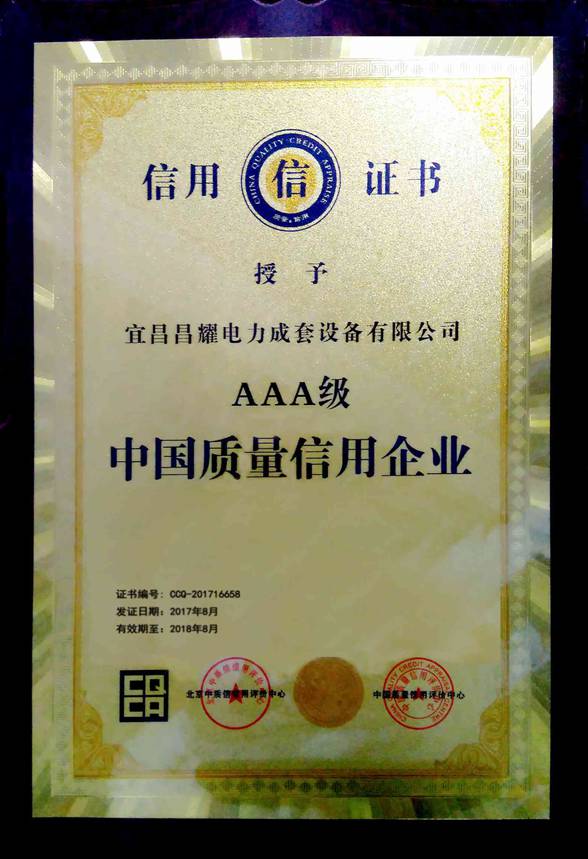 宜昌昌耀電力成套設(shè)備有限公司AAA證書(shū)